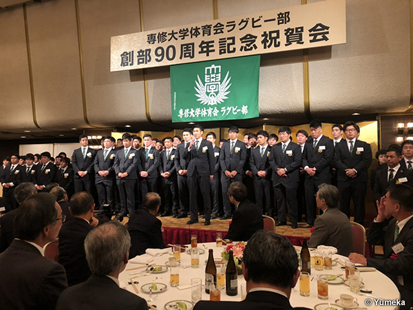 7月7日、都内グランドパレスホテルで専修大学ラグビー部創部90周年記念祝賀会が盛大に行われました。専大OB役員理事会では4-5年前から話が出て、3年位前から本格的に動き出し、2年を切った辺りから慌しく、昨年は毎月集まっては色々と試行錯誤しながら話し合い、今年になっても最後までアイディアを出しながら準備。